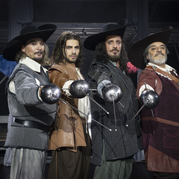 “Tutti per uno, uno per tutti!” è il motto simbolo di un’amicizia incorruttibile che si rinnova in questo spettacolo. La versione musicale italiana del più celebre romanzo di Alexandre Dumas risulta un live sorprendente, in cui musica, prosa e danza si alternano in un racconto coinvolgente ed emozionante. Si vive una storia senza tempo, dove i protagonisti portano in scena la potenza del loro legame, dove “buoni” e “cattivi” combattono mettendo al centro valori quali onore, fedeltà, onestà, troppo spesso messi in crisi dal mito dell’uomo contemporaneo e che i tre moschettieri portano fieri sulla punta delle loro spade. Accanto all’amicizia trova spazio anche l’amore, motore di ogni azione che qui si sublima nell’incontro tra D’Artagnan e Costanza, un amore che verrà spezzato dalla sete di vendetta dell’altra protagonista femminile, la perfida Milady. Il finale riporterà l’equilibrio, ma lo spettatore andrà via con l’amaro in bocca: forse perché i “buoni” sono a un tratto diventati “cattivi”, oppure perché è proprio la morte l’unico mistero che ci rende microscopici e vulnerabili e che neanche l’uomo contemporaneo riesce a svelare.